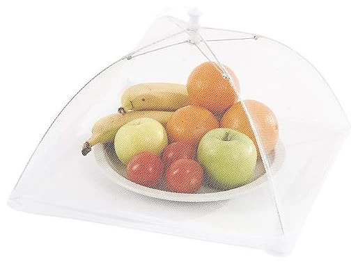 Een inklapbaar vliegenkapje. Schermt etenswaren af van vliegen of andere insecten.