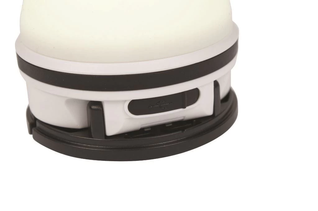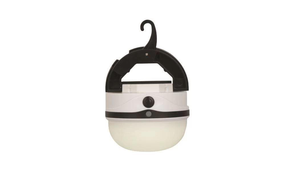 Een ultra compacte en multifunctionele lamp. Deze kan worden gebruikt als hanglamp door middel van de haak of kan op de zijkant worden geplaatst door de houder. Daarnaast kan deze lamp liggend worden gebruikt of met de magneet. Instelbaar in 3 verschillende lichtstanden. De lamp is spatwaterdicht en werkt op een oplaadbare Li-ion accu, welke via het meegeleverde USB oplaadsnoer opgeladen kan worden. Brandtijd: 35-7 uur. Lichtopbrengst: 13-200 lumen.