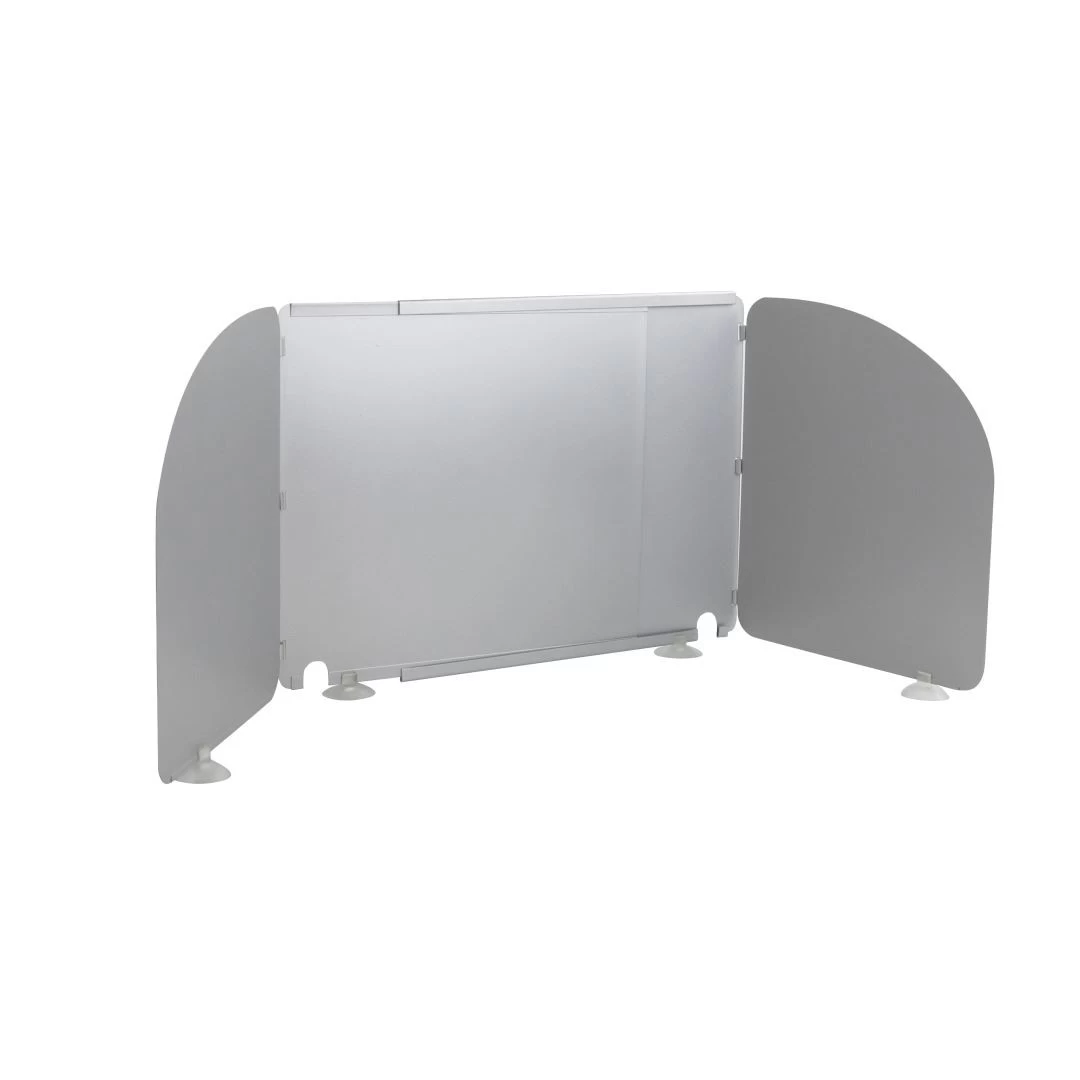 Pare-brise universel pour la cuisson. Ce pare-brise de cuisson universel peut être utilisé avec un poêle de camping ou un brûleur à gaz. Ce pare-brise de cuisson est placé autour des brûleurs. Cela empêche la flamme de souffler et transfère plus efficacement la chaleur de la flamme à la casserole. Après utilisation, le pare-brise est facile et compact à ranger. En outre, le pare-brise de cuisson est livré avec quatre ventouses pour plus de stabilité.