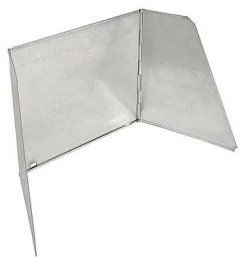 A fully retractable and collapsible universal cooking windbreak. Ideal for use with a gas burner or stove, preventing the flame from blowing out and transferring it more effectively to the pan. The screen is adjustable in width from 38 to 70 centimeters. Attachable by means of suction cups. After use, the windbreak is easy and compact to store..
