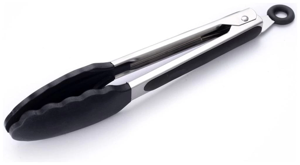 BBQ tang met siliconen handgreep. Sluitingsmechanisme voor eenvoudig opbergen. Compact dus eenvoudig mee te nemen.
