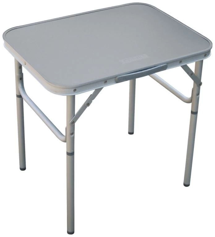 Convenient and compact camping table, suitable for 2 people. The Eurotrail Sante can be adjusted into two heights: as a table or as a handy side table. The legs are all micro-adjustable at the bottom. Aluminum worktop is waterproof and heat resistant, so can be used as kitchen table!