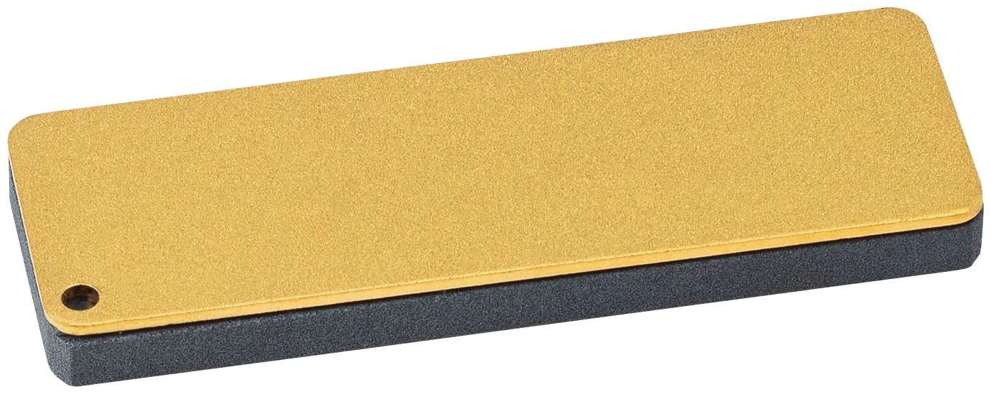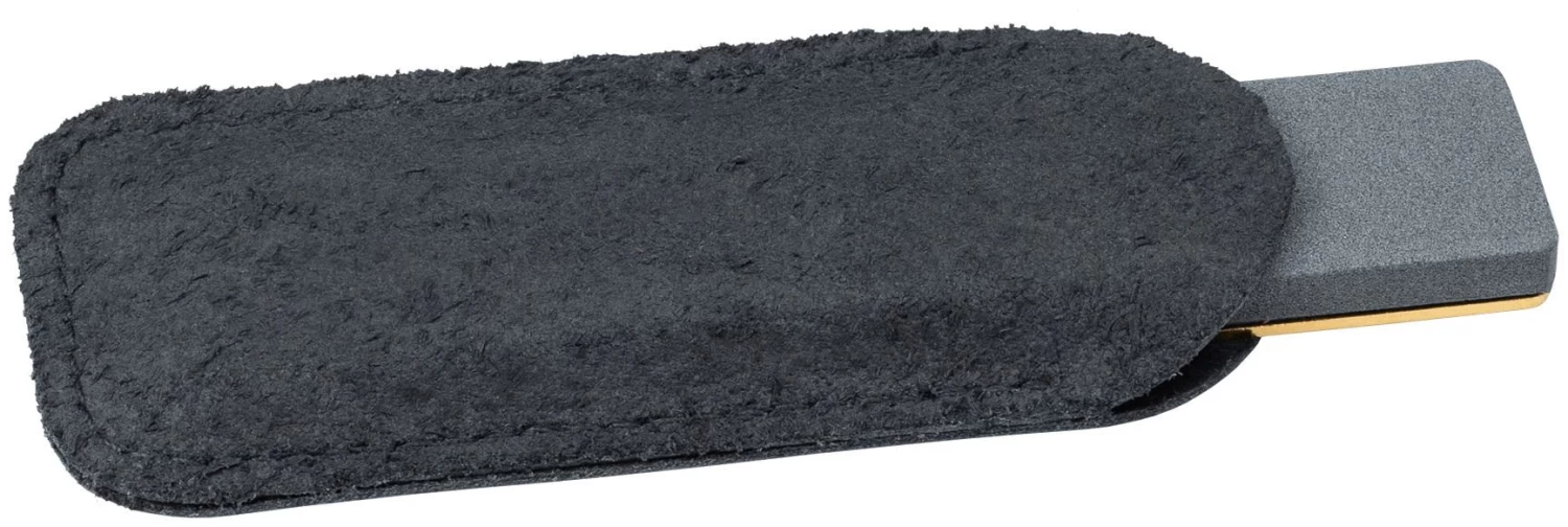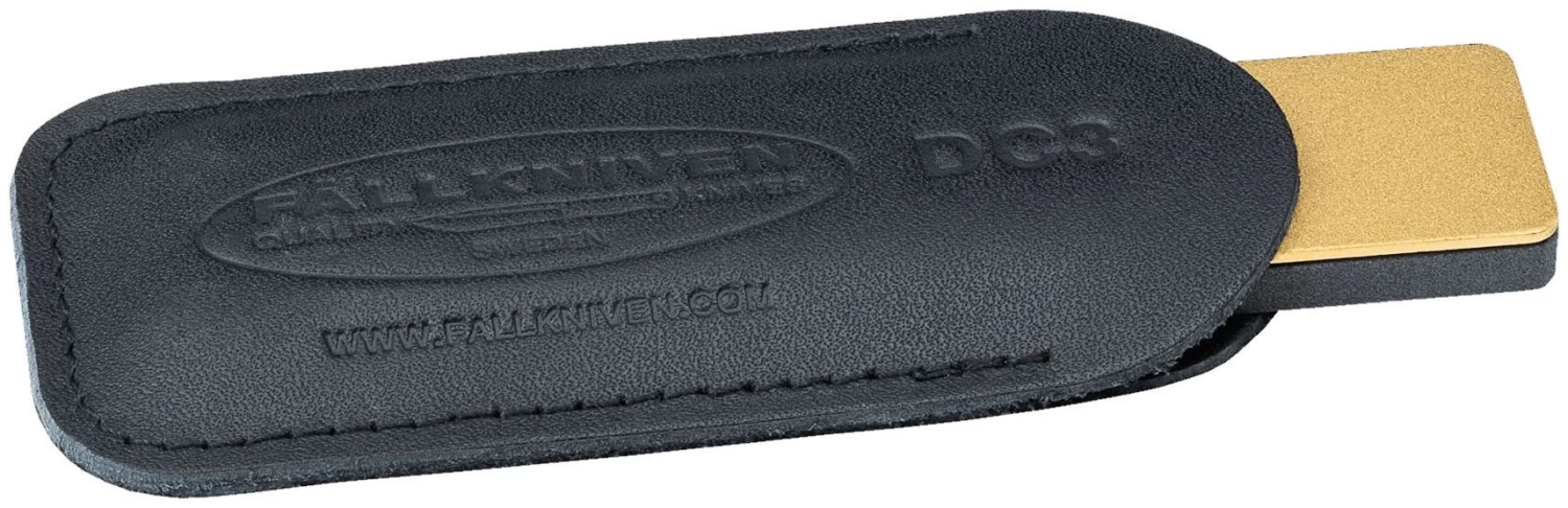 Une combinaison de diamant et de céramique dans 1 meule. Les nouvelles lois DC3 et DC4 sont un fait. Une pierre diamantée (25 microns) et une pierre céramique très spéciale, en saphirs synthétiques. Ce matériau est très durable et conserve sa forme, ce qui est très important pour pouvoir continuer à bien meuler les lames. Ceci est dû à la grande dureté des couteaux Fällkniven. Avec cette meule spécialement développée, tout le monde peut les garder pointus. Avec cette technique, aucune huile humide n’est nécessaire. De temps en temps, selon l’utilisation, il est conseillé de nettoyer la pierre. Cela peut se faire avec de l’eau tiède et/ou du savon vert. Un étui en cuir est inclus.