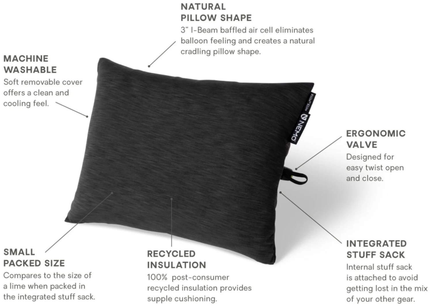 The result is a pillow that is soft and yielding like your pillow at home, feels big when cradling your head, yet packs surprisingly small.