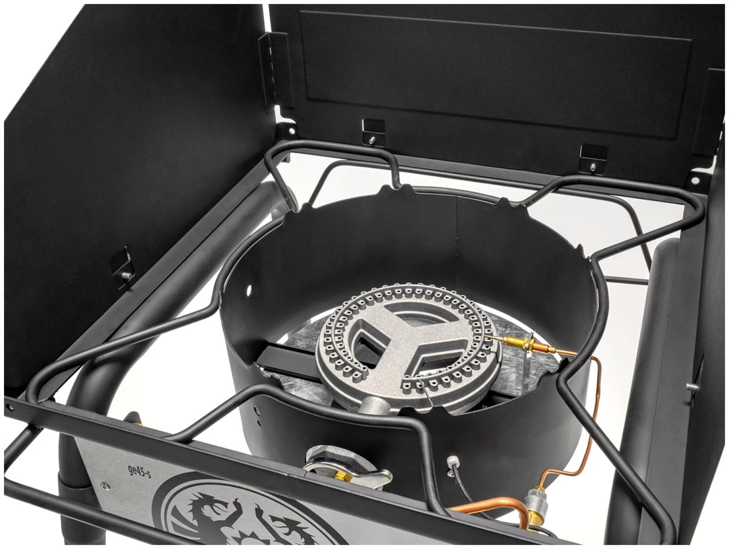 De Petromax Gas Table Double Burner is een stevig en stabiel vrijstaand 1-pits kooktoestel. Of je nu samen reist, of voor een groep of gezin moet koken: met dank aan de krachtige gaspit van 5kW bereid je met het grootste gemak een lekkere maaltijd op locatie. Zoals je van Petromax gewend bent is deze kooktafel zeer stevig. De tafel kan belast worden tot maar liefst 80 kg, dus zelfs je gietijzeren pan of Dutch Oven kun je zonder problemen gebruiken. Het kooktoestel is bovendien voorzien van een afblaasbeveiliging: als de vlam uitgaat wordt de gastoevoer automatisch afgesloten.